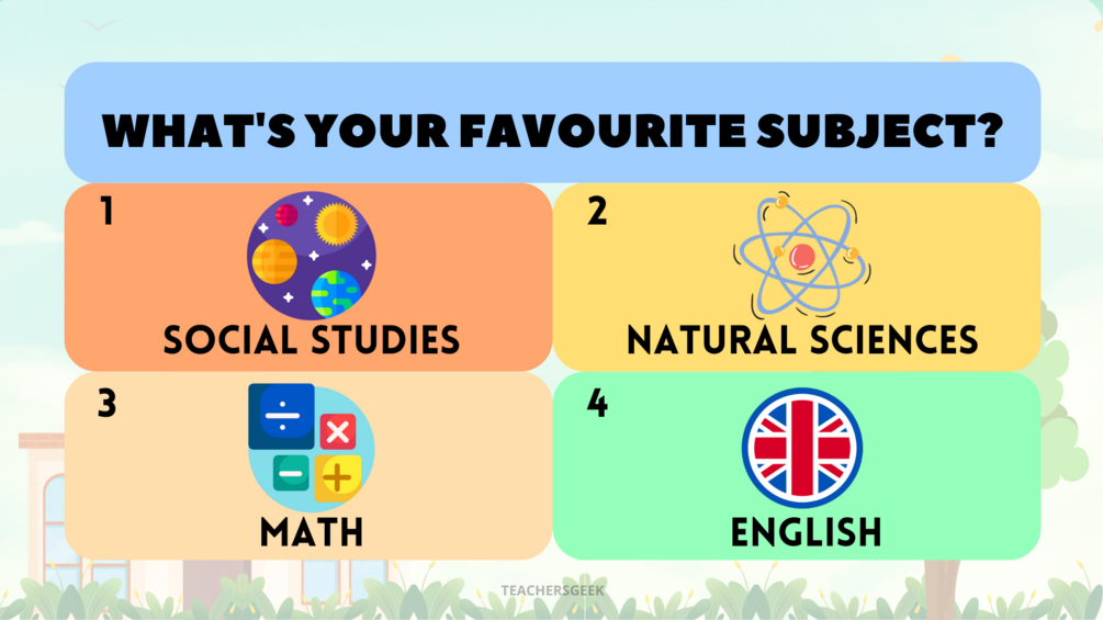 Questions (10 in total) are posed to the students with 4 answers associated with each corner. They must run to the corresponding corner according to what they want to answer.